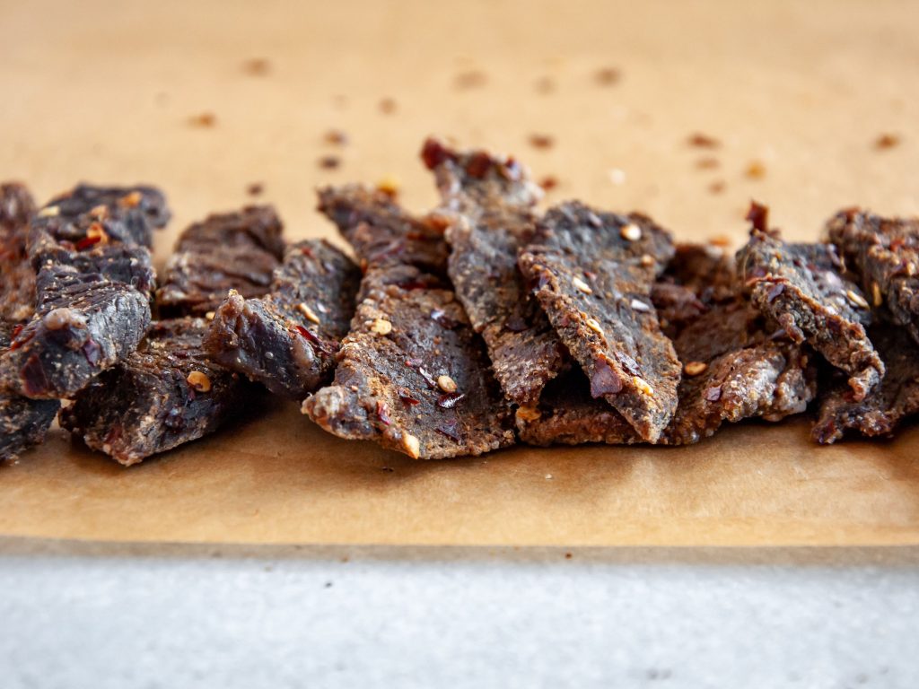 Spicy Beef Jerky is a delicious snack that is perfect to enjoy on a warm day such as in the summer or to help you get in shape when you are on a calorie-cutting diet. You can also take some jerky with you on your travels, which is great, as it will make you less homesick during your breaks from work.